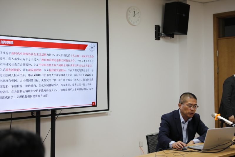 学院党委书记李恒威教授传达了《关于深入推进世界一流大学和一流学科建设的若干意见》文件精神,提出文件的要点:一是突出培养一流人才、服务国家战略需求、争创世界一流的导向,深化体制机制改革,统筹推进、分类建设一流大学和一流学科;二是在办好世界一流大学和一流学科的同时必须扎根中国大地,办出中国特色。围绕以上两个要点,李恒威书记从战略定位、立德树人、学科优化、师资队伍、创新体系、全球合作、管理评价、保障机制和组织领导等9个方面展开,详细阐述学院“双一流”建设过程中的问题与思路。