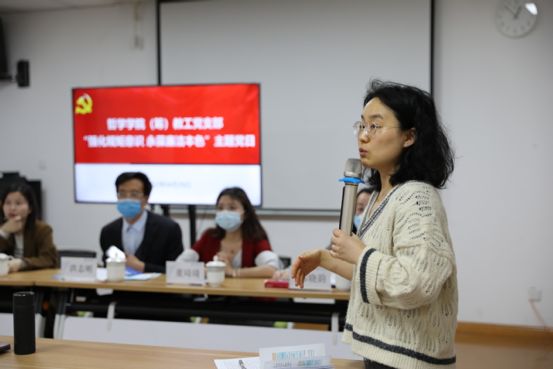 哲学学院教工支部书记陈越骅同志从自身经历出发,表达了财务规范作为师德师风底线要求之一的重要性,同时由衷希望通过此次活动为老师们答疑解惑,搭建长效交流渠道,达到信息多跑腿,老师少走路的目的。