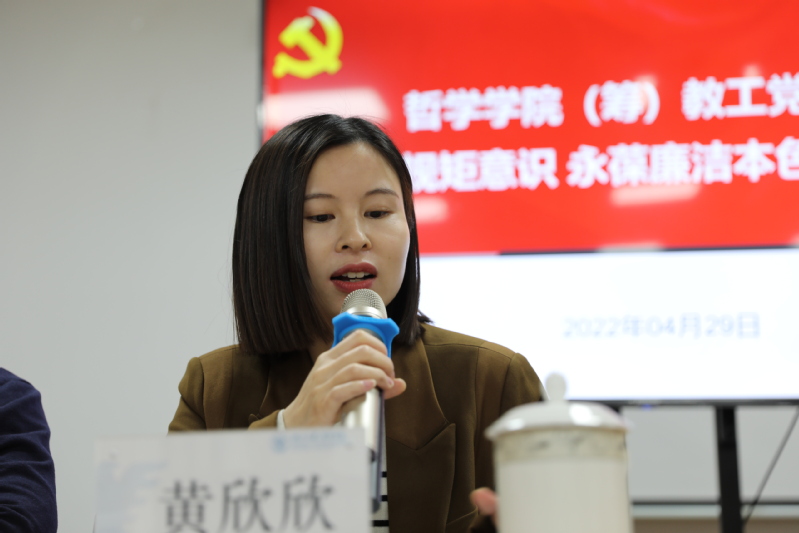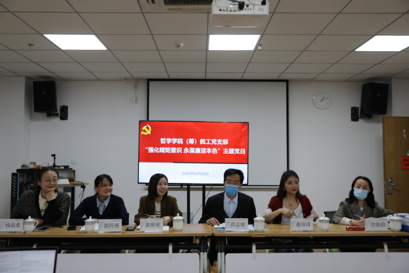2022年4月29日下午,为了进一步强化教师党风廉政意识、熟悉财务规范,特别是帮助青年教师尽快适应科研生活的财务纪律,切实解决文科科研经费报销的常见疑难问题,哲学学院(筹)教工党支部邀请了计财处第二党支部的董琦琦书记和紫金港核算分中心(西区)负责人洪志明副主任、计财处黄欣欣副主任等一行交流党风廉政和财务规范问题。活动成功举办,有效促进了两个支部党建共建、业务交流、理论学习走深走实。