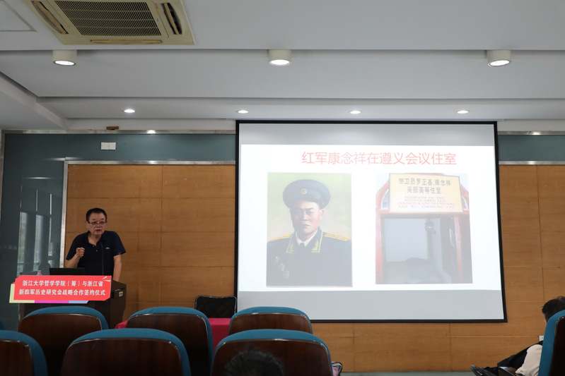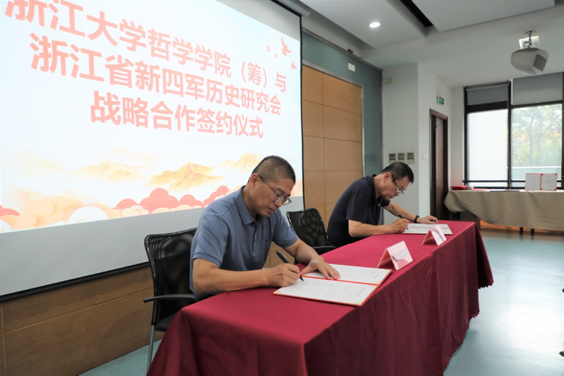 6月10日下午,哲学学院与浙江省新四军历史研究会“红色基因传承”战略合作备忘录签约仪式暨学院2022年第一期“先锋学子”党员专题讲座在医学院综合楼举行。学院党委书记李恒威、浙江省新四军历史研究会副会长、宣讲团团长康小平出席签约仪式,浙江省新四军历史研究会宣讲团成员、学院相关领导及全体学生正式党员参加。学院党委副书记鲁平主持仪式。