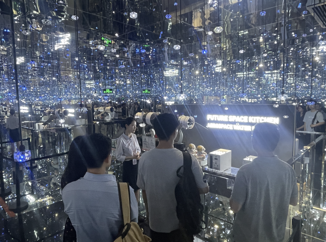 在杭州九阳小家电有限公司,同学们通过讲解员的介绍及实物展览了解了企业28年的发展历程,被九阳积极创新、坚持数字化转型的理念所深深打动,也切实感受到了钱塘“产业立区”“创新强区”的发展方向。