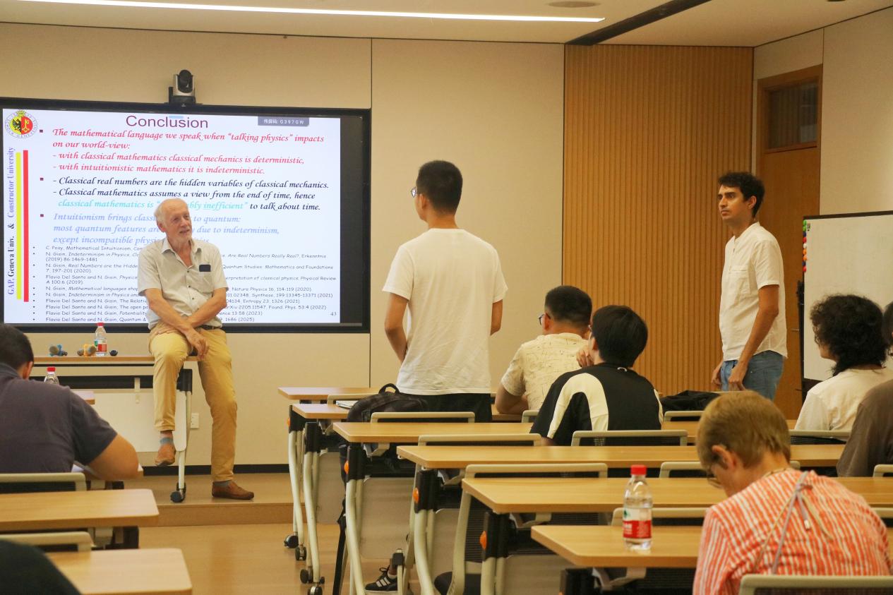 本次讲座持续约2小时,Nicolas Gisin教授以清晰的逻辑与丰富的案例,展现了 “自然主义直觉主义” 在物理学中的潜力,为数学与物理的交叉研究提供了新视角。与会者在这场思想盛宴中,不仅加深了对经典与量子物理基础问题的理解,也深刻体会到数学语言对物理世界观的塑造力量,为后续相关研究注入了新动力。
