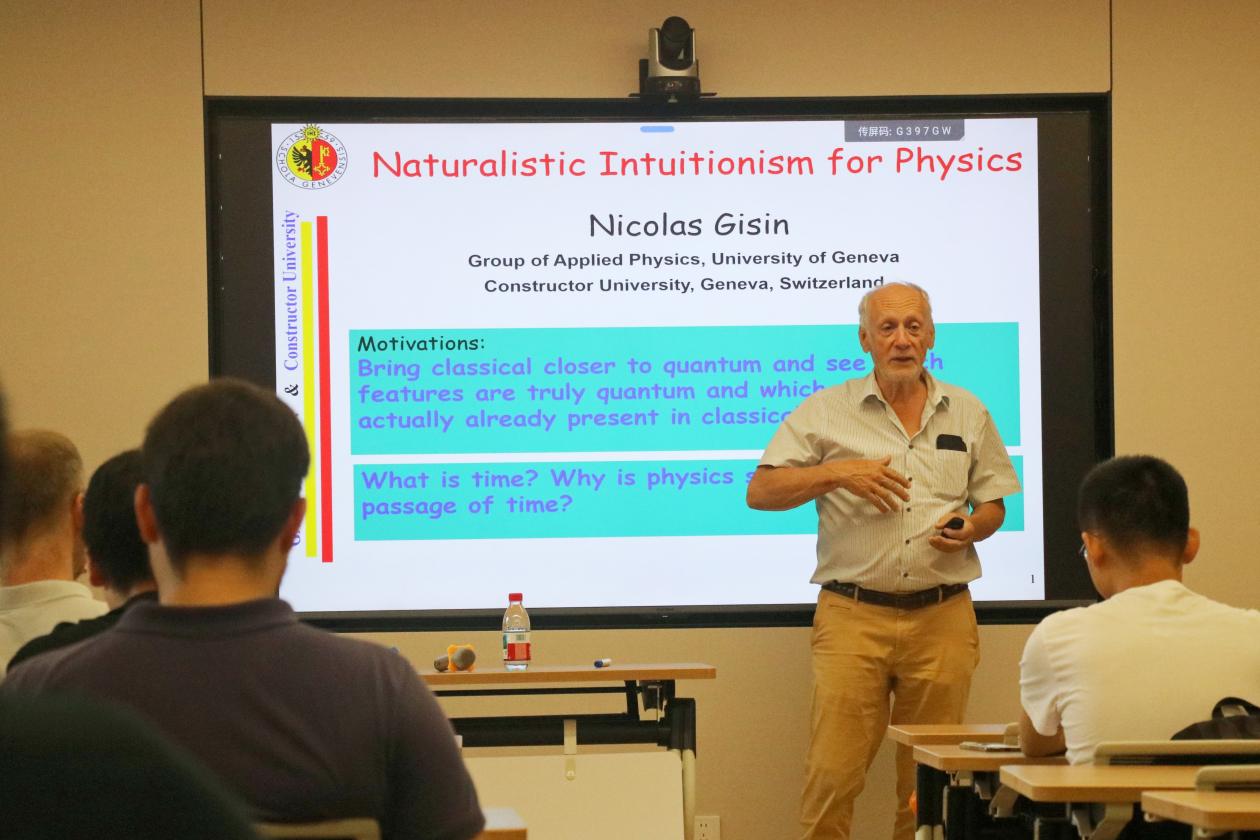 2025年 9月 26日,瑞士日内瓦大学荣休教授Nicolas Gisin应邀在浙江大学哲学学院311室作题为“Naturalistic Intuitionism for Physics(物理学的自然主义直觉主义)的学术讲座。本次讲座由浙江大学哲学学院“百人计划”研究员Bruno Bentzen主持,吸引了来自浙江大学数学、计算机、物理、哲学等多个院系、以及安徽师范大学等单位在内的约30位学者与学生参与,现场学术交流氛围热烈。