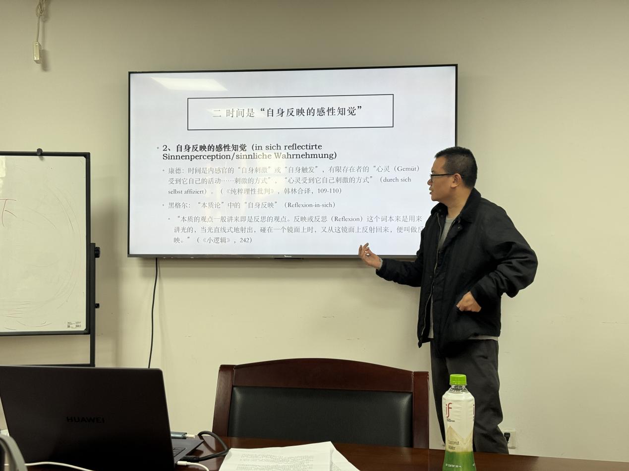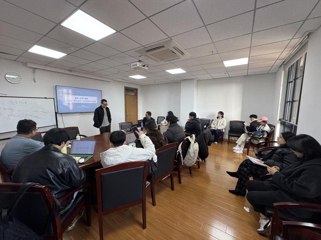 11月28日下午,“后思:现时代状况”第二十讲在浙江大学紫金港校区哲学学院613会议室顺利举行。杭州师范大学马克思主义学院奚颖瑞副教授为师生带来题为《感性、自身与偏斜——马克思博士论文时间观的哲学史阐释》的讲座。此次讲座由李哲罕研究员主持,校内外众多师生参与了此次活动。
