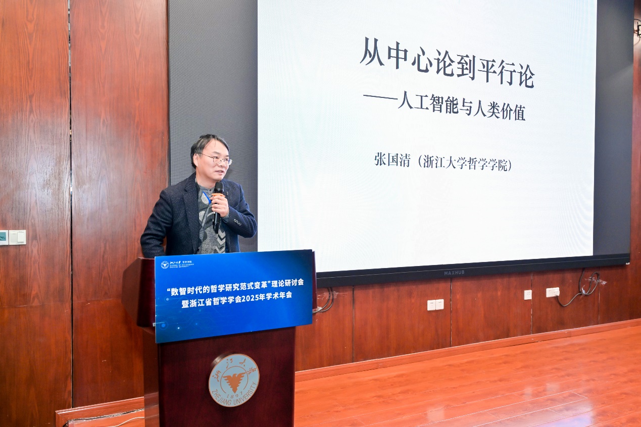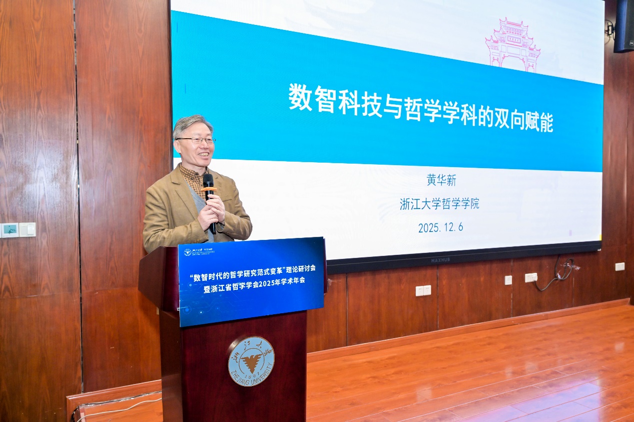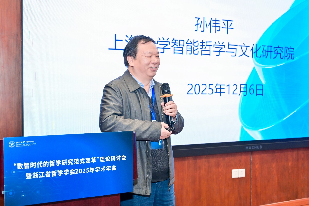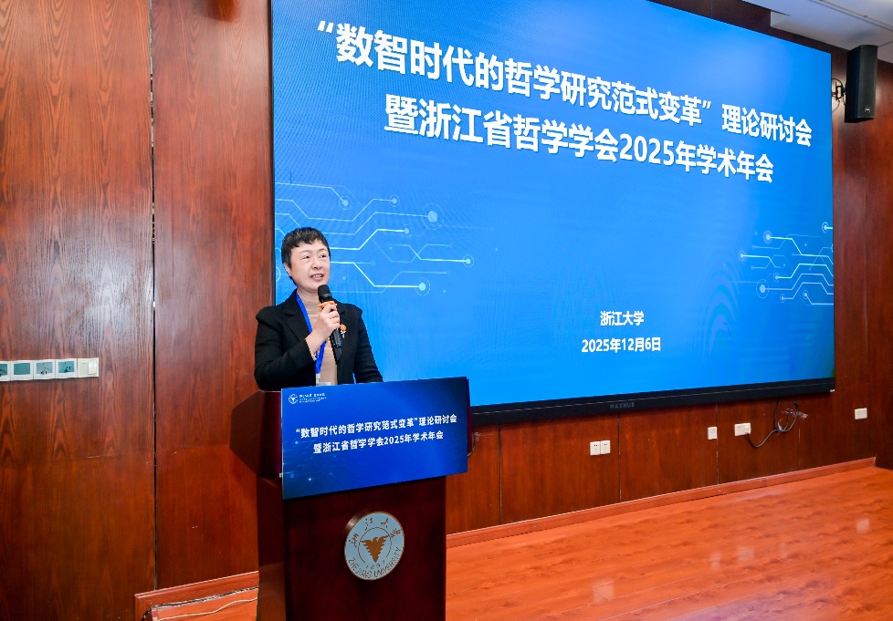 12月6日,“数智时代的哲学研究范式变革”理论研讨会暨浙江省哲学学会2025年学术年会、浙江省社会科学界学术年会分论坛在浙江大学紫金港校区成功举办。本次研讨会由浙江省哲学学会、浙江大学哲学学院联合主办,汇集了浙江省内外一百余位哲学领域专家学者,围绕“数智时代的哲学研究范式变革”主题进行深入研讨。