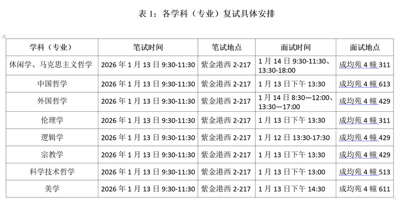 2026年哲学学院普通招考博士研究生“申请-考核”制综合复试将于2026年1月12日-14日期间举行,复试场所笔试在在浙江大学紫金港校区西区教学楼(西2-217)、面试在成均苑4幢,具体安排如下: